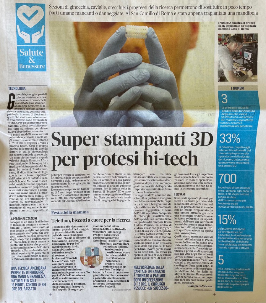 – Un grande lavoro svolto da più equipe dell’ospedale romano. Può spiegare come è stata realizzata e a cosa è servita l’endoprotesi in titanio personalizzata?